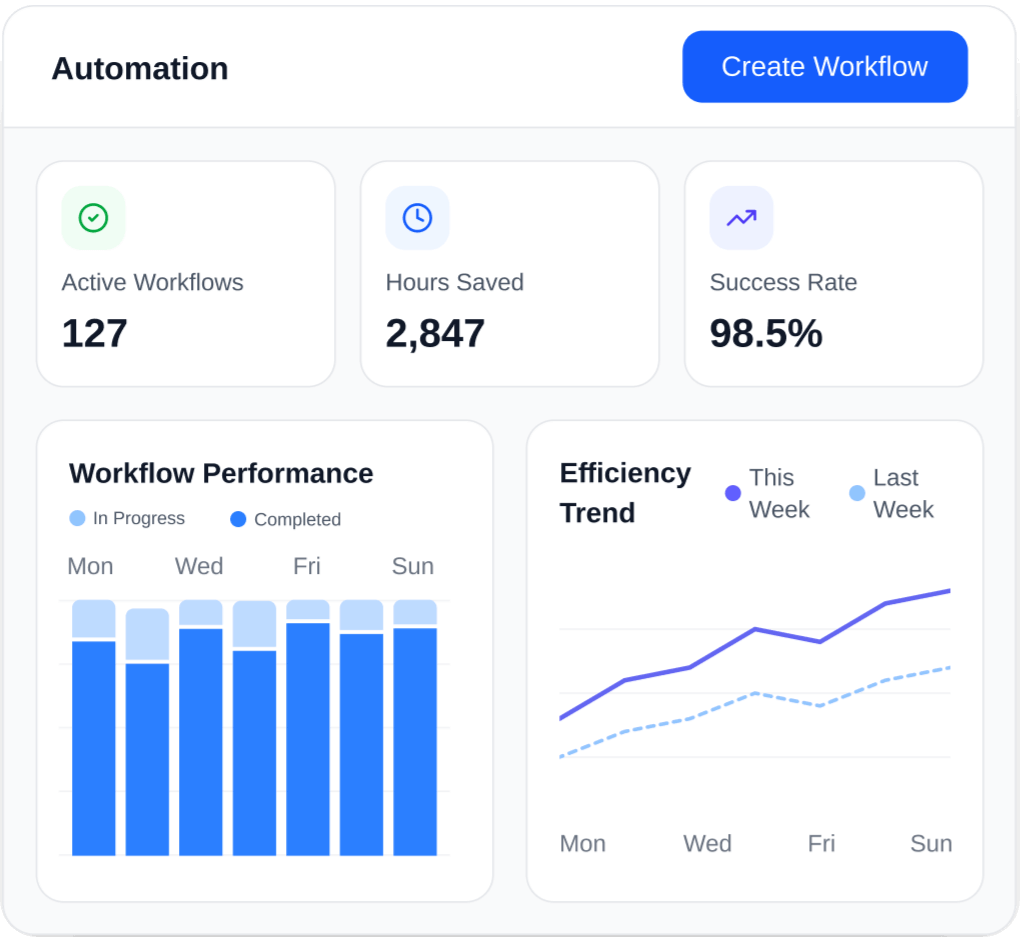 Öğrenip uyum sağlayan akıllı otomasyonlar ile manuel iş yükünü ciddi oranda azaltın; doğruluğu artırıp ekibinizi yüksek değerli görevlere yönlendirin.